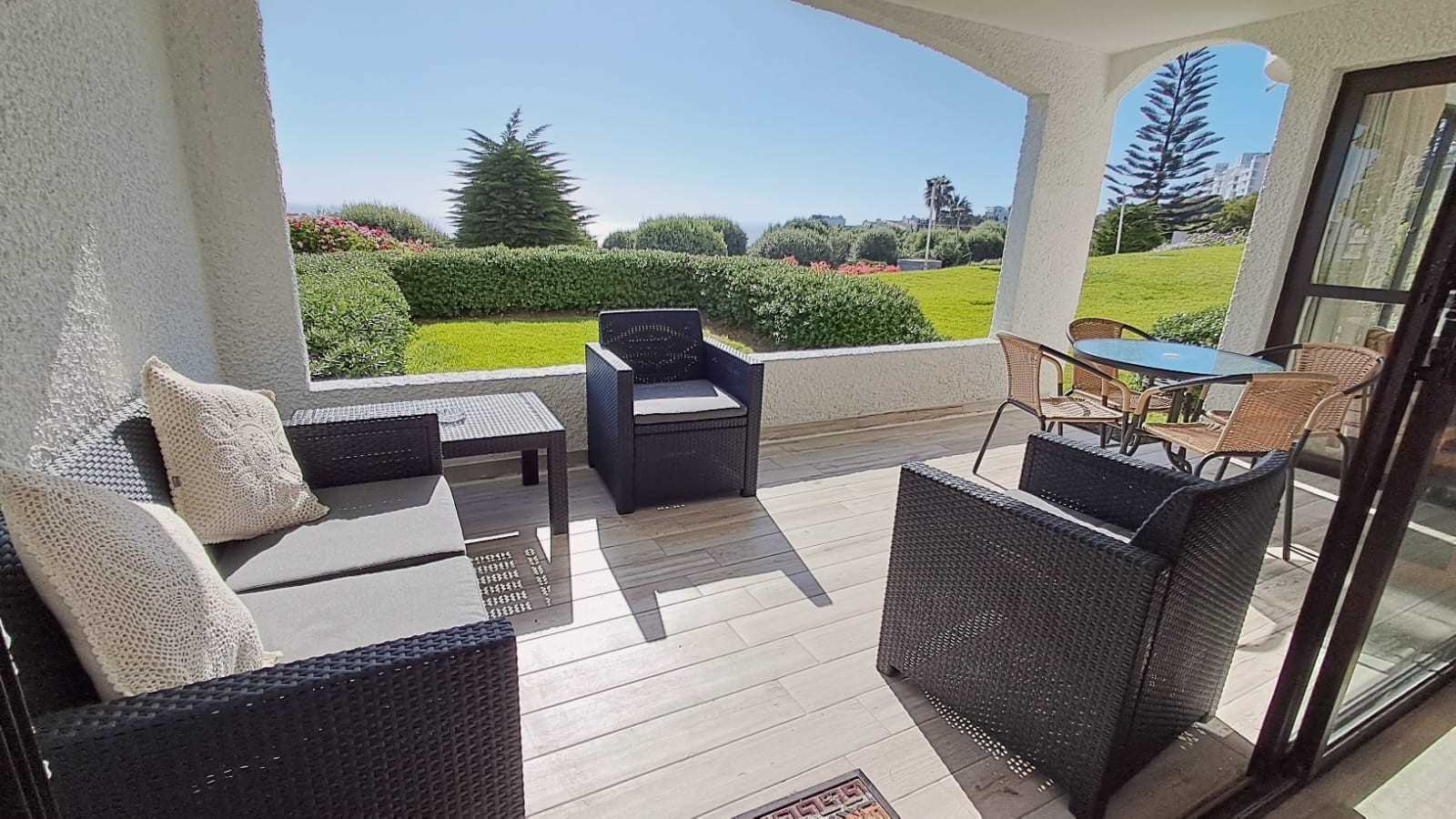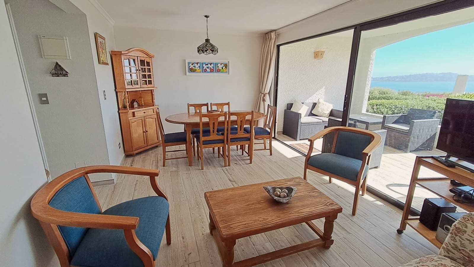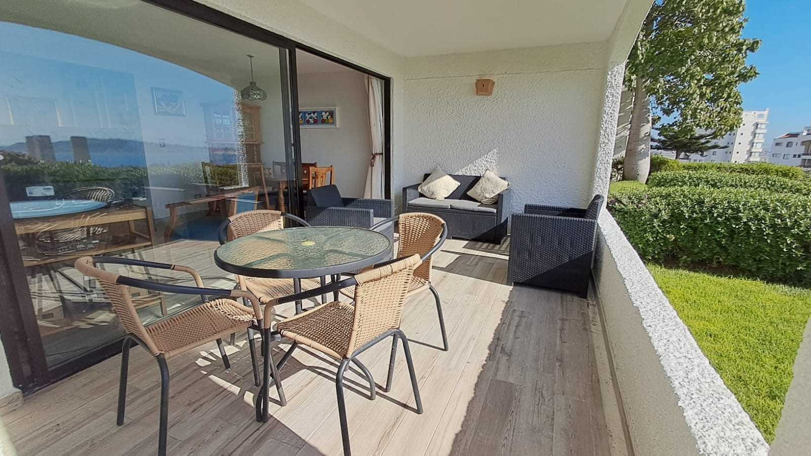 Departamento ubicado en primer piso, segunda línea, acceso por terraza a piscinas, cercano a bajada a la playa, 1 estacionamiento.