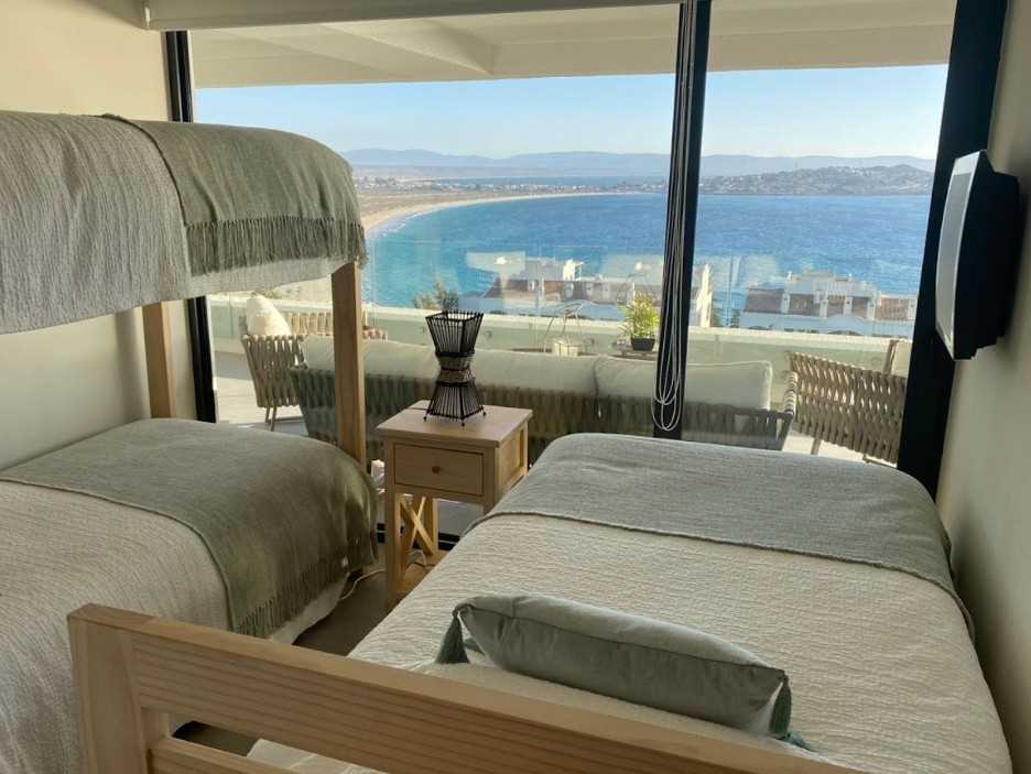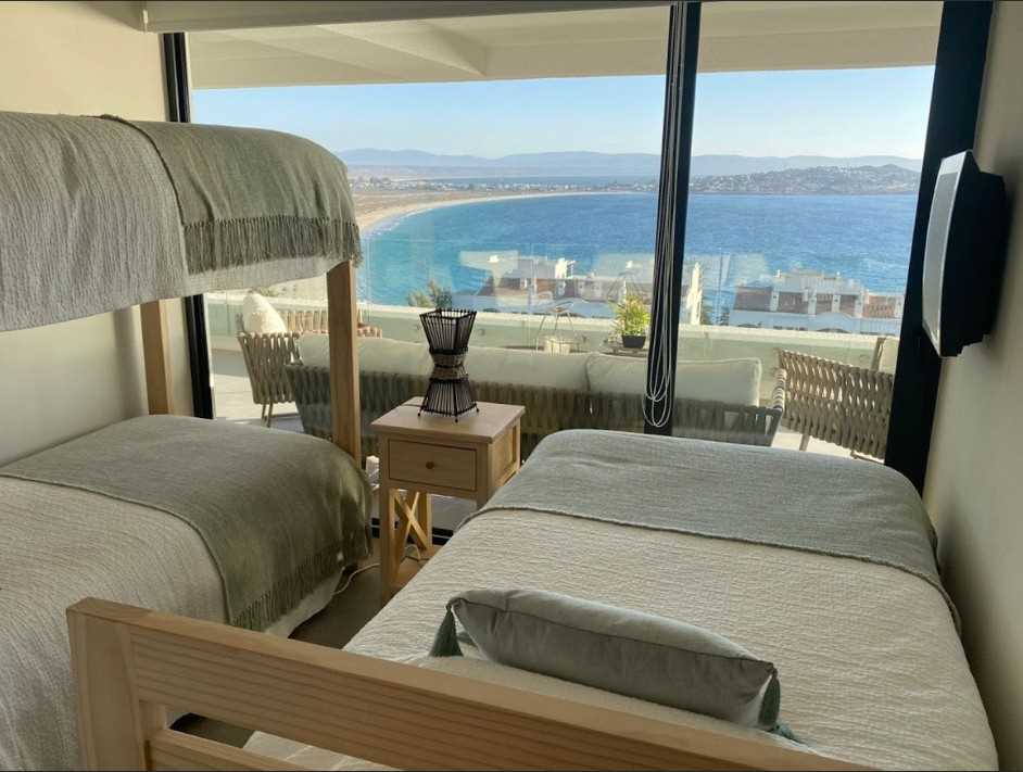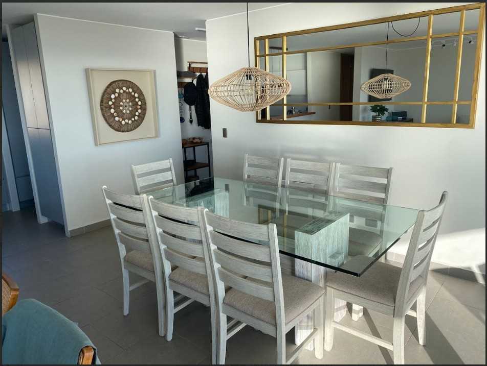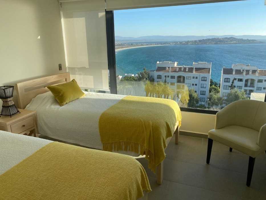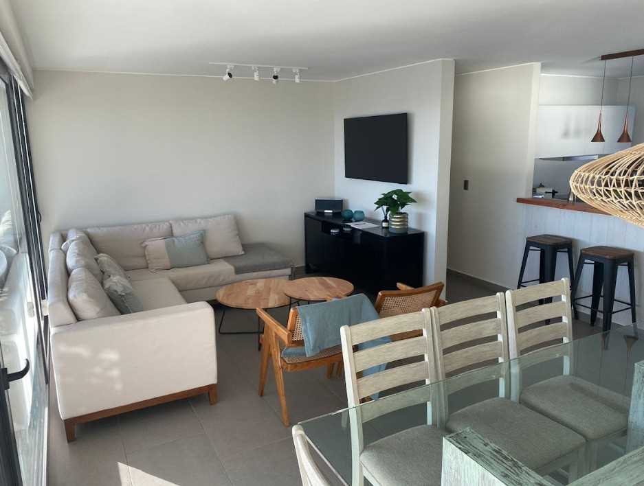 Moderno departamento, hermosa vista con amplia terraza, cama matrimonial king con walk in closet, 2do dormitorio con 2 camas, 3er y 4to dormitorio con una cama y un camarote, piso 4to. 3 estacionamientos. Depto no cuenta con tv por cable.
