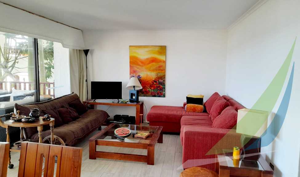 Cómodo departamento hermosa vista con salida a jardín, cercano a piscina y pozas de mar, 1 estacionamiento. Cama matrimonial de KING y 2 literas de 1 plaza. Calefacción central. No se permiten mascotas.