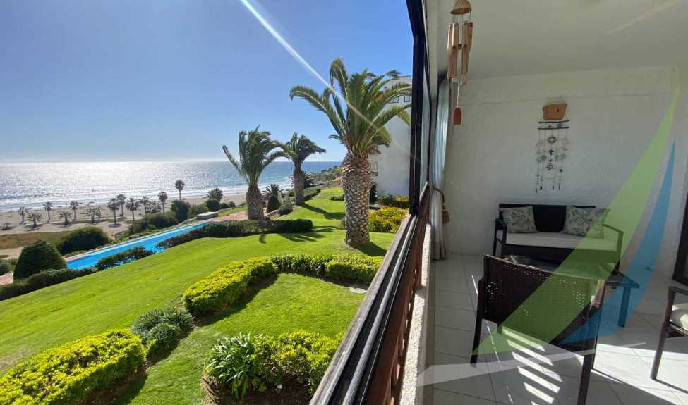 Cómodo y amplio departamento, ubicado en edificio 2, Piso 2. Segunda Línea, hermosa vista al mar, con piscina, cercano a Centro Comercial y funicular. Terraza cerrada vista libre, calefacción eléctrica. 1 Estacionamiento