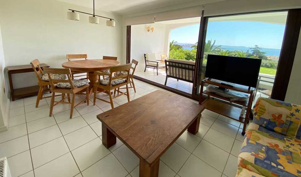 Departamento ubicado en primer piso, segunda línea, acceso por terraza a piscinas, cercano a bajada a la playa, 1 estacionamiento.