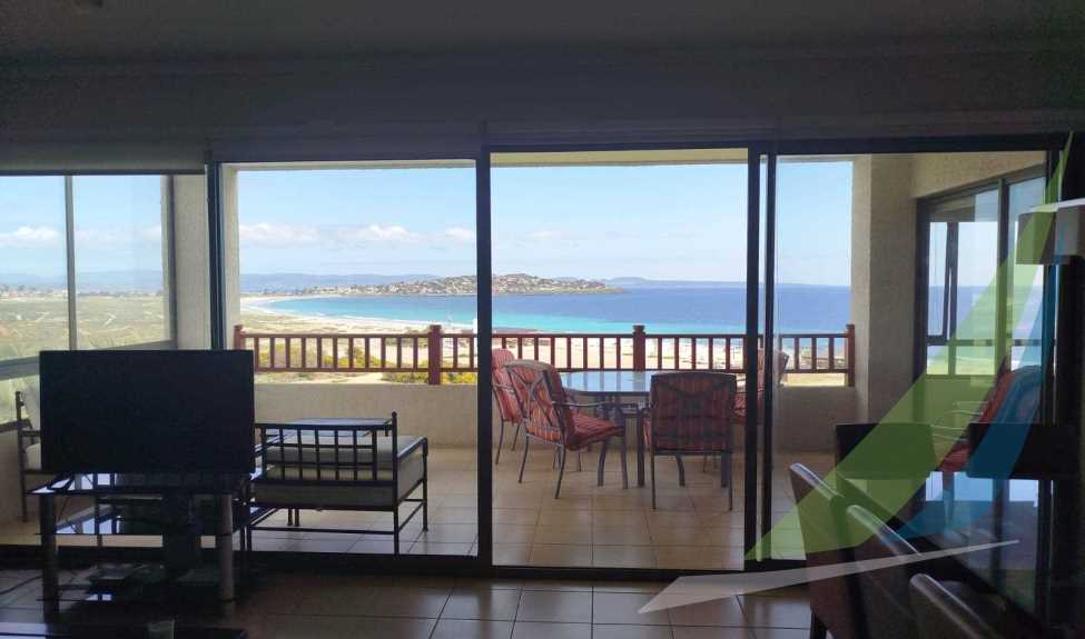 Moderno departamento cercano a la bajada a la playa, hermosa vista al mar, 2do piso, 2 estacionamientos. Dormitorio matrimonial en suite, 2do dormitorio con un camarote y una cama y 3er dormitorio con un camarote y dos camas. NO SE ACEPTAN MASCOTAS.