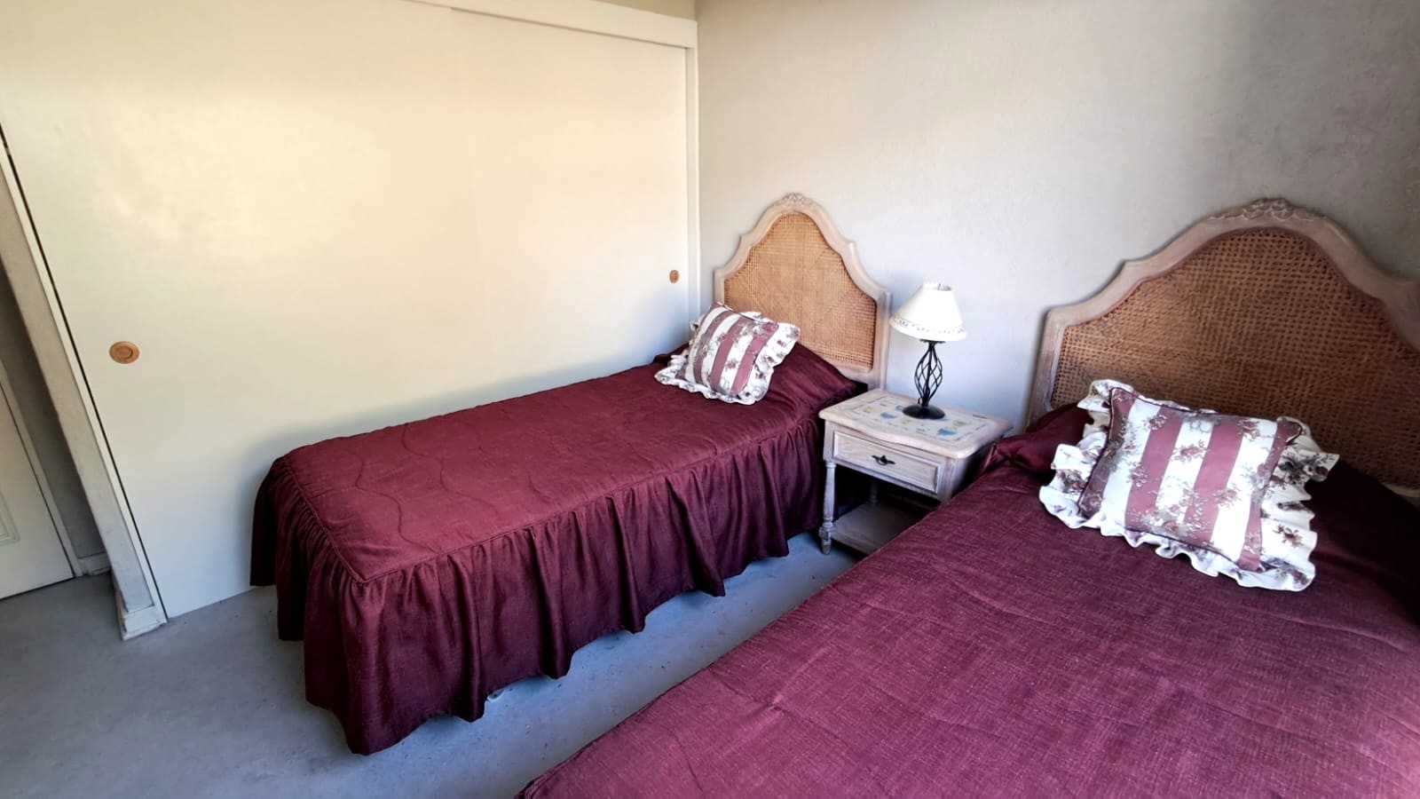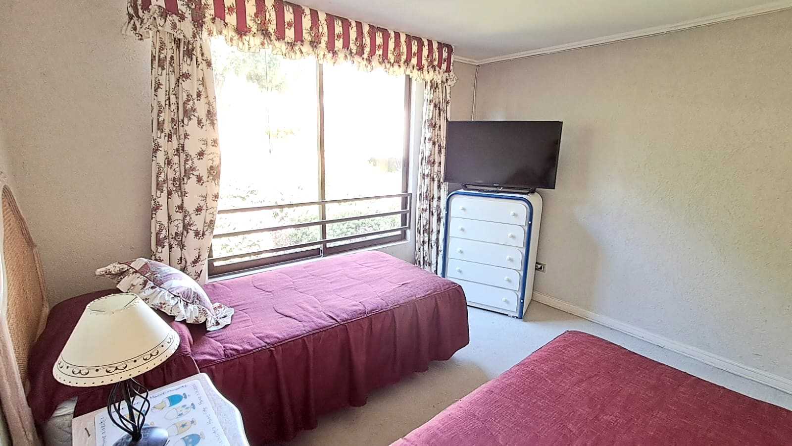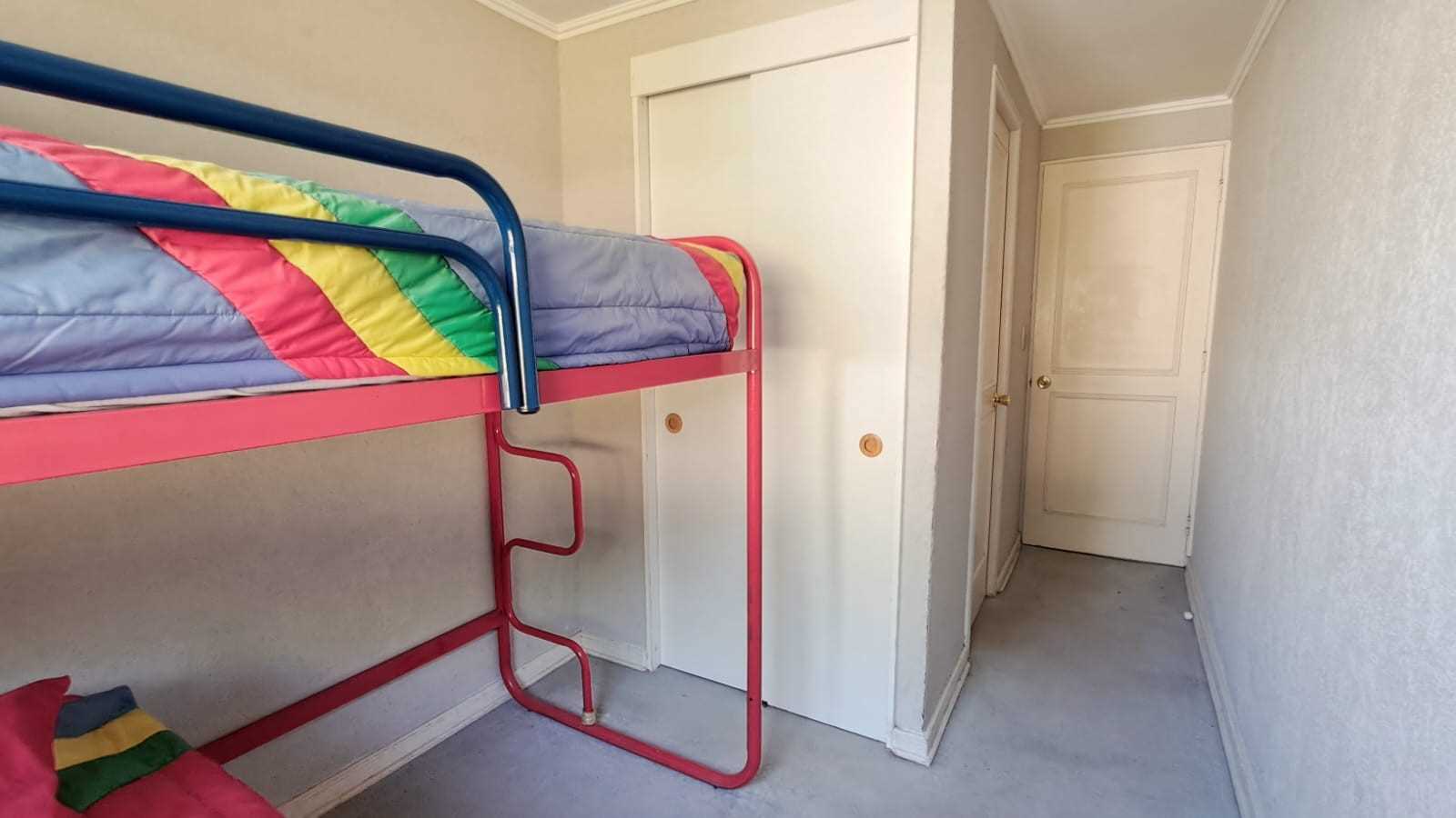 Cómodo departamento cercano a bajada a la playa y piscina, cuenta con matrimonial, dormitorio con 2 camas individuales y dormitorio con un camarote nido. TV en sala de estar y matrimonial.