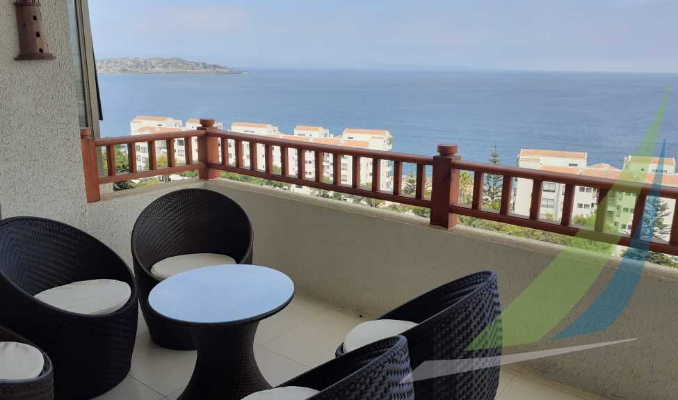 Cómodo y amplio departamento, ubicado en edificio 2, Piso 2. Segunda Línea, hermosa vista al mar, con piscina, cercano a Centro Comercial y funicular. Terraza cerrada vista libre, calefacción eléctrica. 1 Estacionamiento
