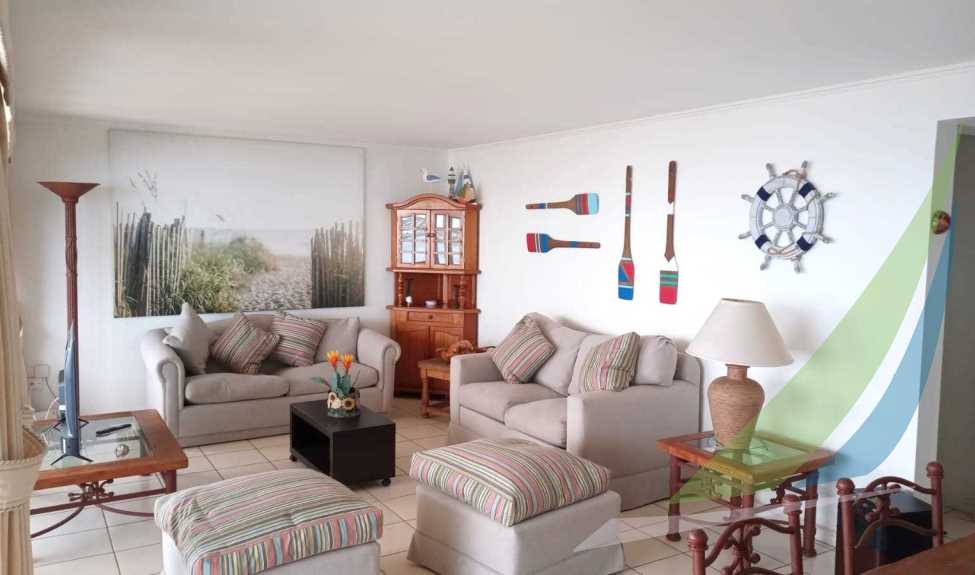 Cómodo departamento, hermosa vista, cercano a piscina y pozas de mar, ubicación 2do piso, 1 estacionamiento. Cama matrimonial de 2 plazas y 2 literas de 1 plaza. No se permiten mascotas.