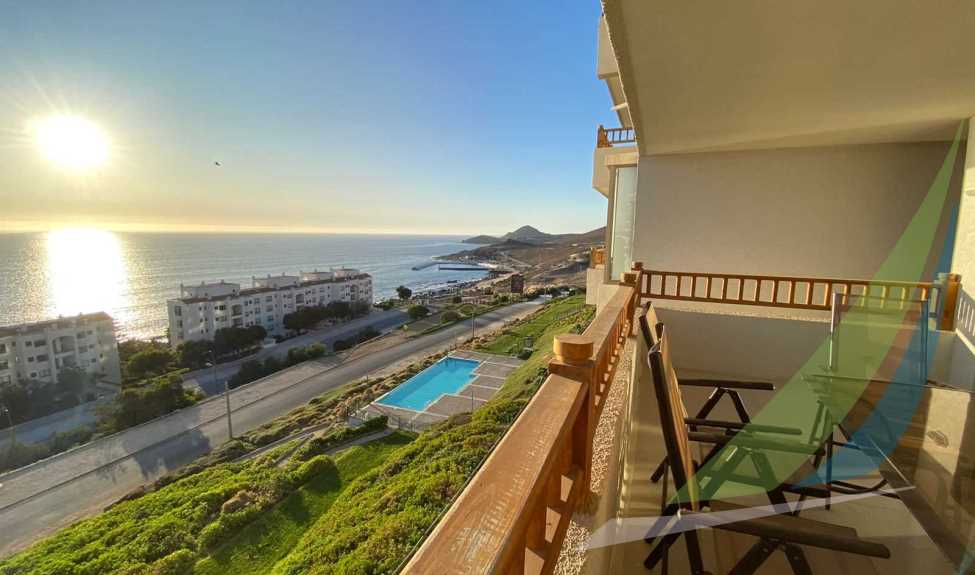 Cómodo departamento, hermosa vista, cercano a piscina y pozas de mar. 1 estacionamiento. Ubicación 4to piso, nivel de ingreso está en 3er piso. Cama matrimonial king y 2 literas de 1 plaza. Calefacción Central. No se permiten mascotas.