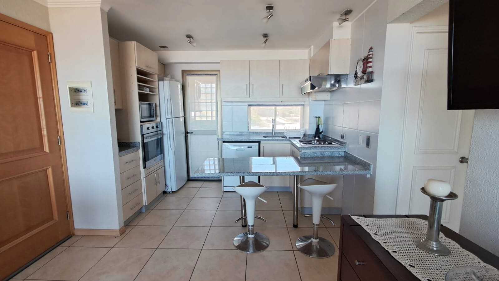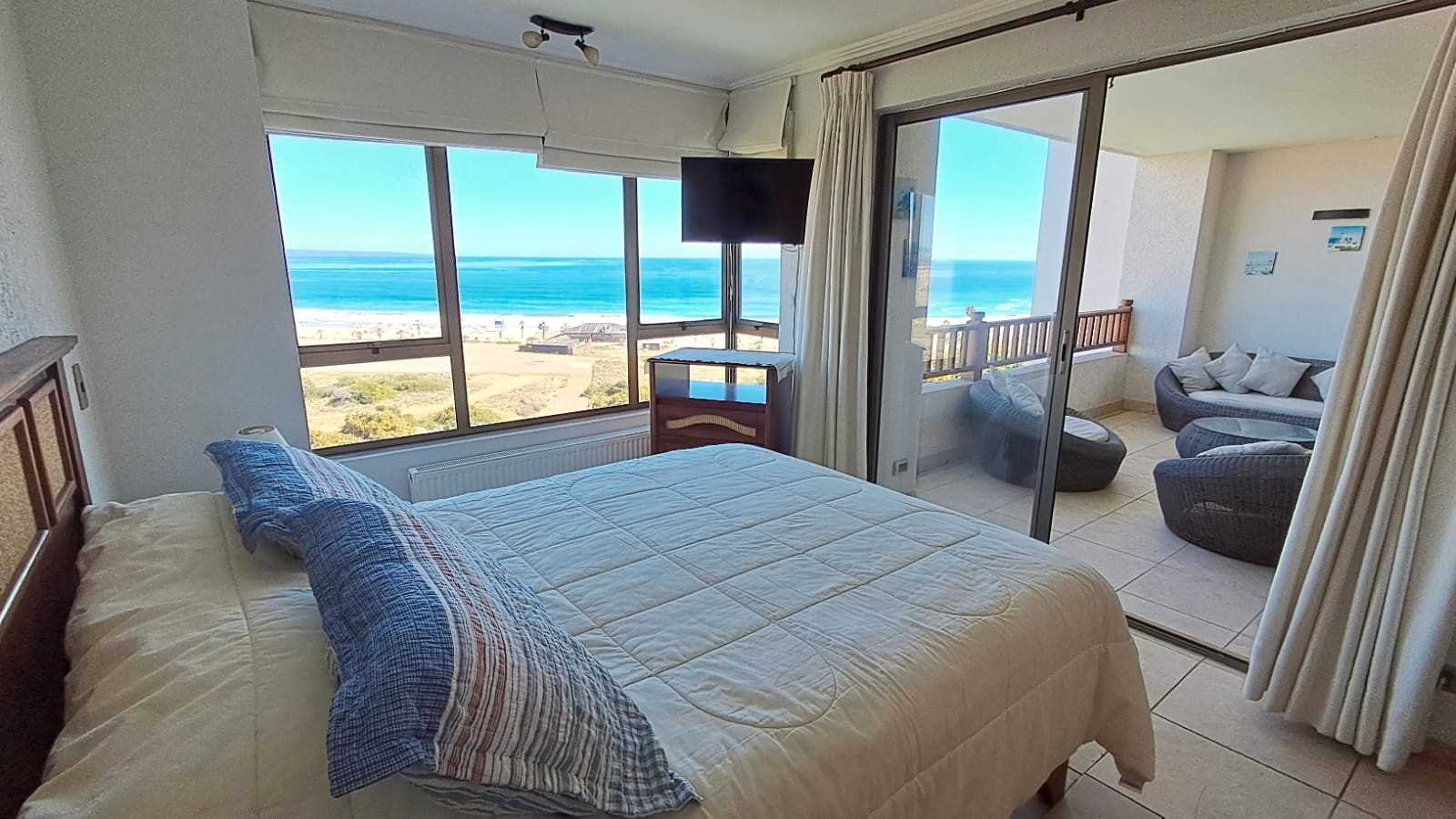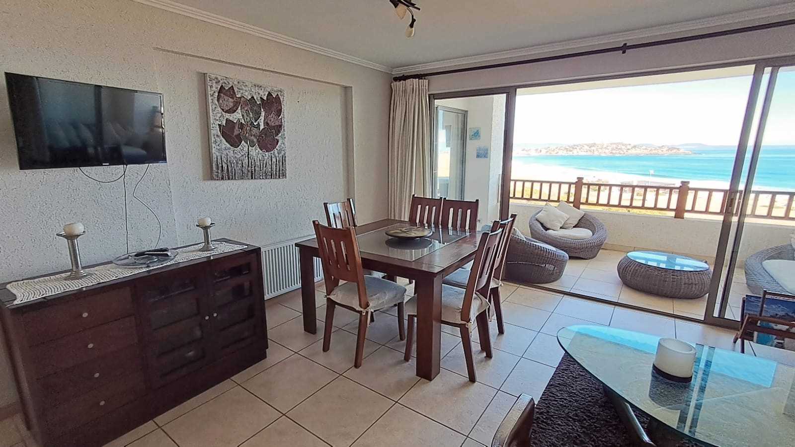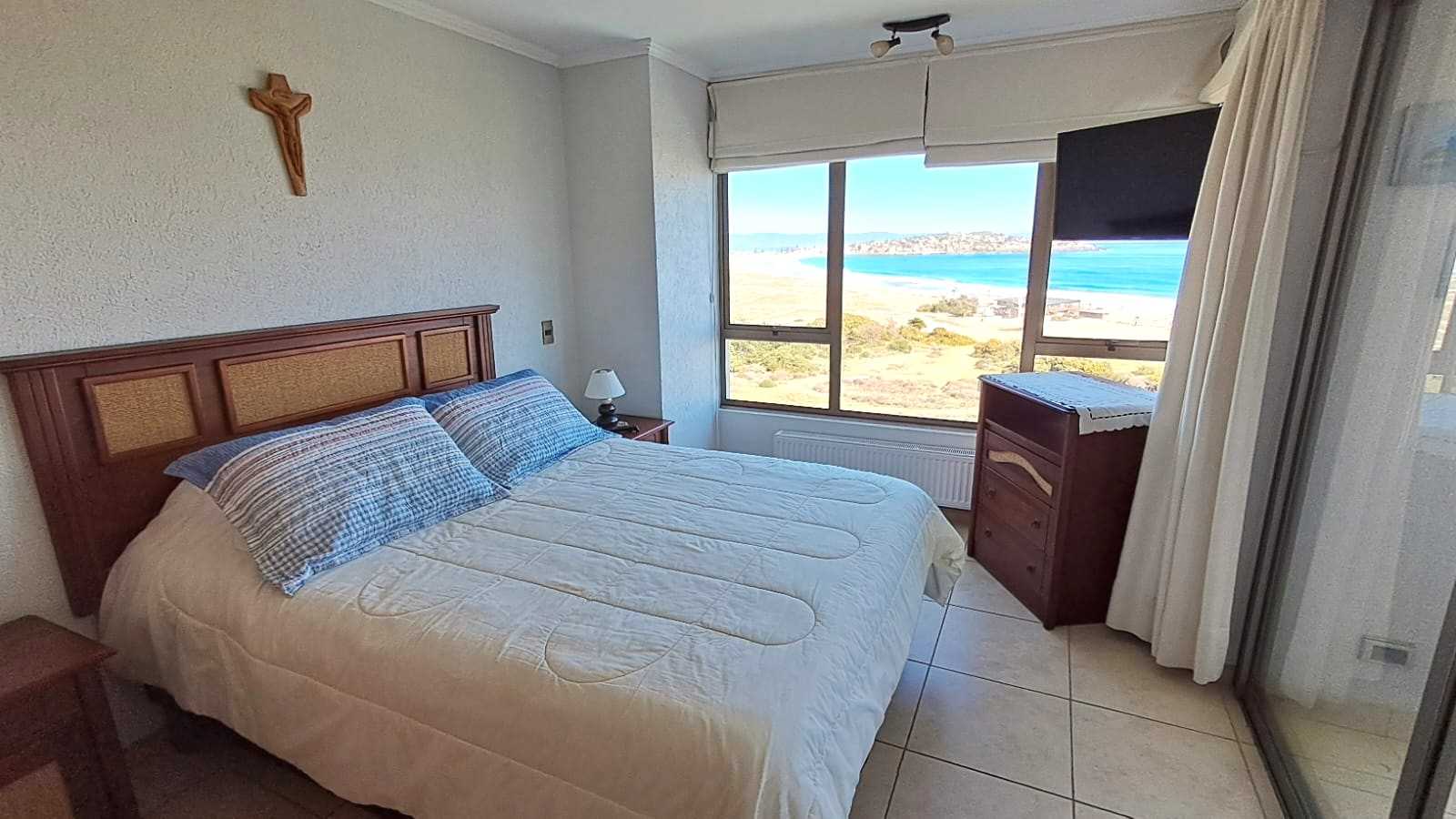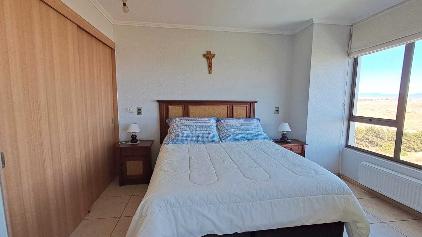 Hermosa vista, cercano a la bajada a la playa, 5° piso con ascensor. 1 estacionamiento, matrimonial con cama de 2 plazas y dorm. 2 con 2 literas de 1 plaza. No se permiten mascotas.